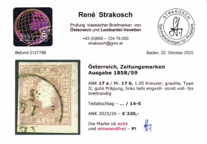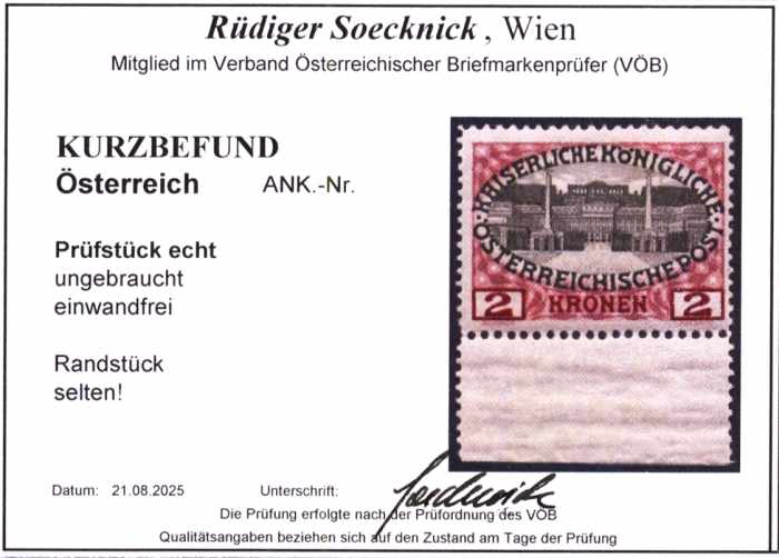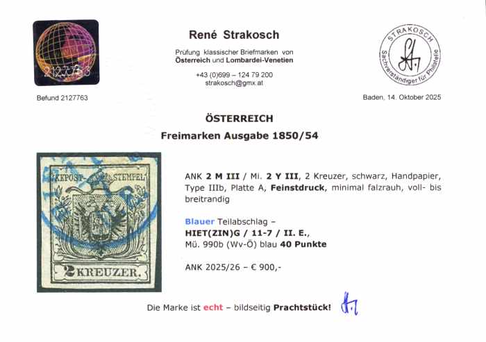 2 kr, wappen, handpapier, type III, schwarz, fotoattest