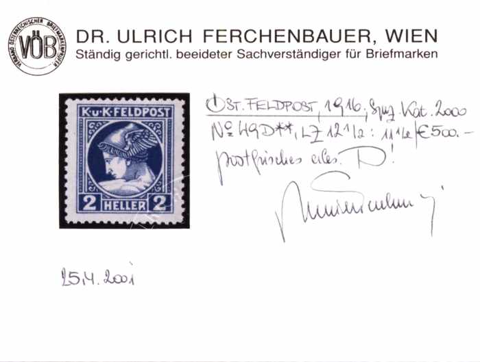 feldpost, ausgabe serbien, 2 kr, KFJ, freimarke 1916