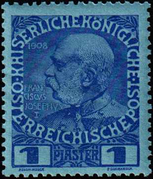 levante, 10 so, KFJ, feiner druck, type II, freimarke 1876/83, amtlicher neudruck (gelblicher gummi auf glasigem papier)