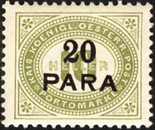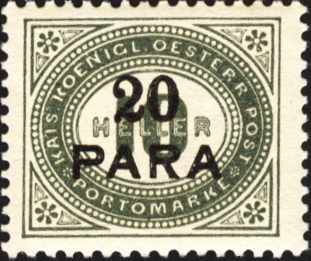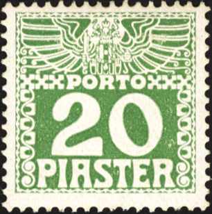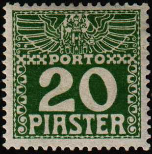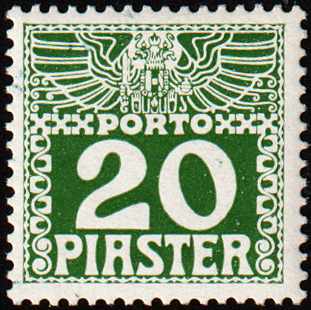 levante, 20 pia, gestrichenes papier, dunkelgrün, porto 1908