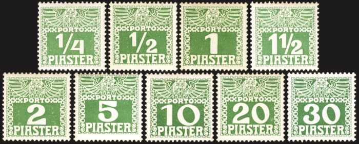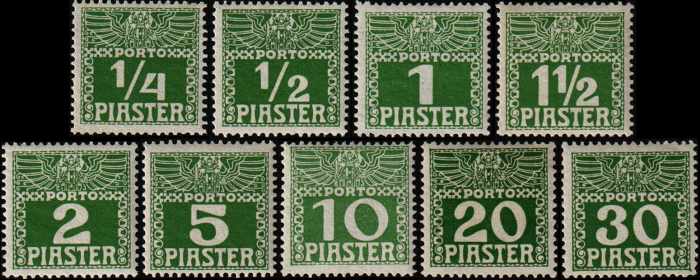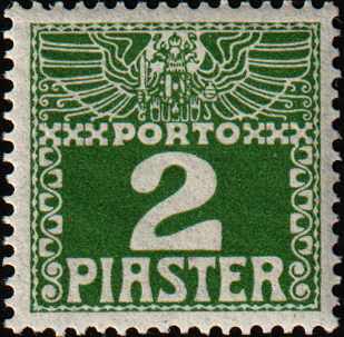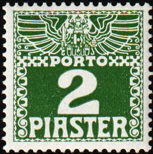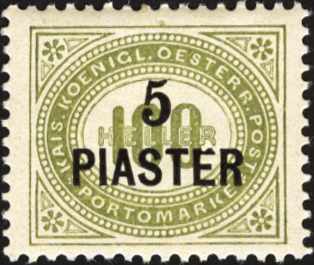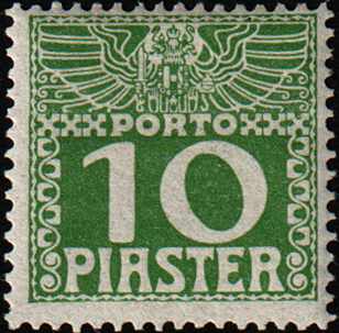 levante, 10 pia, gestrichenes papier, dunkelgrün, porto 1908