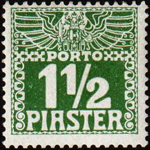 levante, 1 1/2 pia, glanzloses dünnes papier, porto 1909